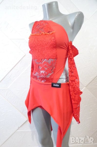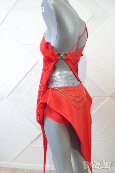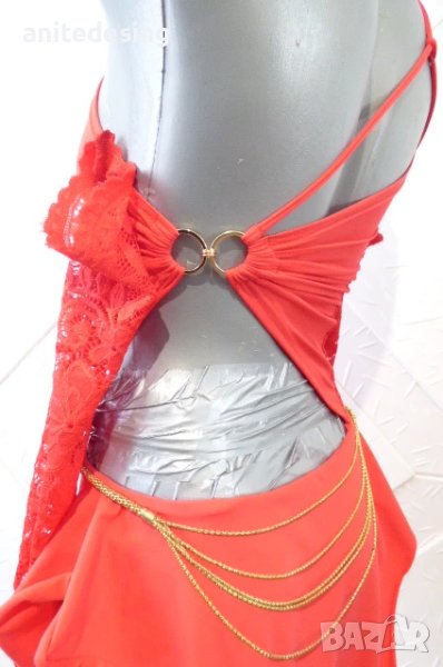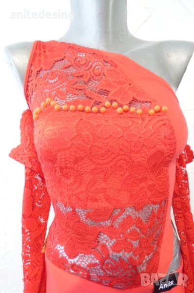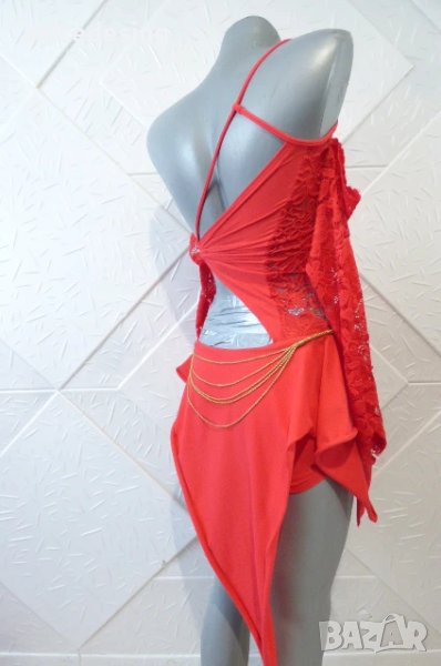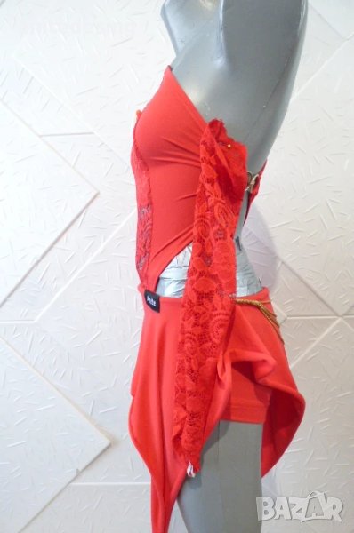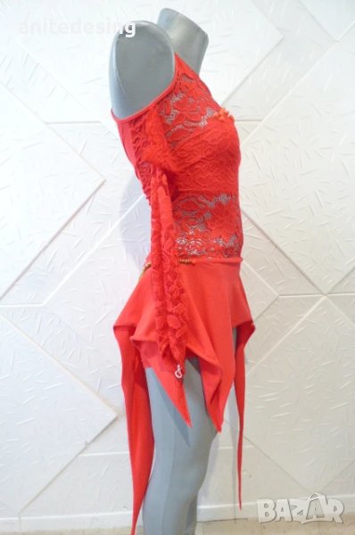 Червена детска рокля за спортни танци с дантела ,