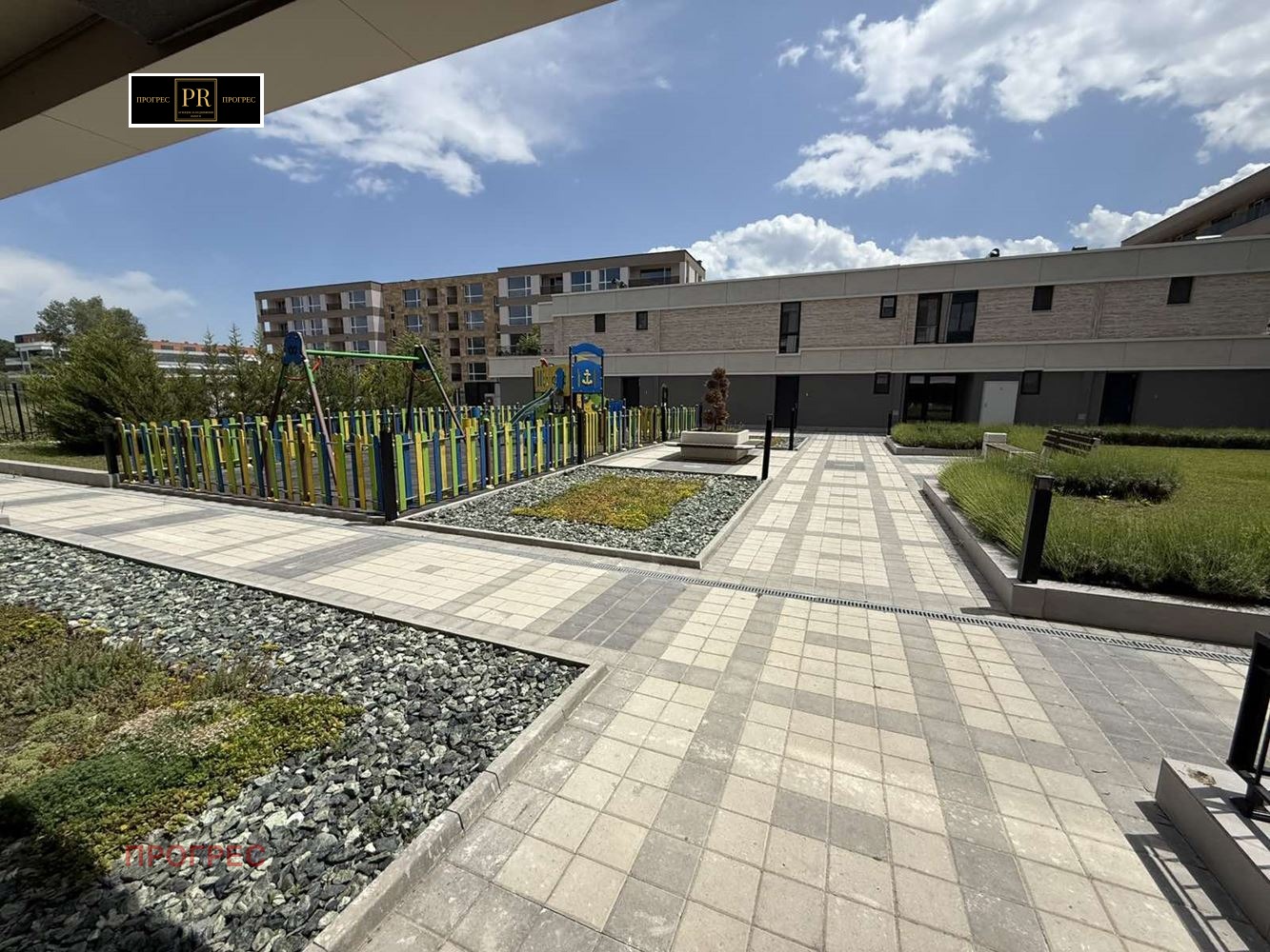Комплексът е затворен тип тишина, зеленина, детска площадка и луксозни общи части. Сградата е енергоефективна, с фасада от естествени материали и безупречен дизайн, алуминиева дограма Schüco с троен стъклопакет комфорт, който ще оцените всеки сезон.