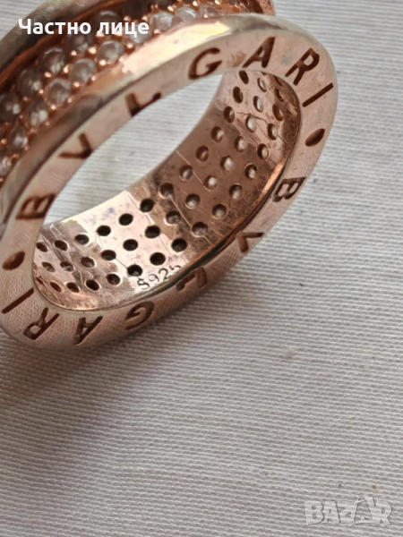 Разкошен Сребърен Позлатен Пръстен BVLGARI с Бели Циркони → Обява 51296600