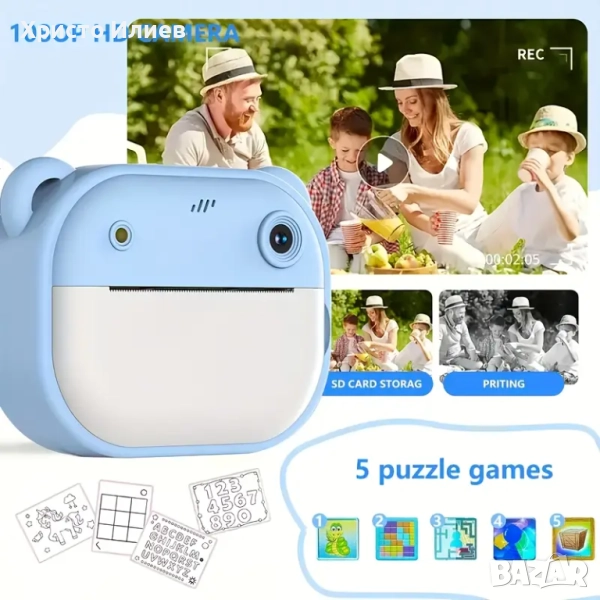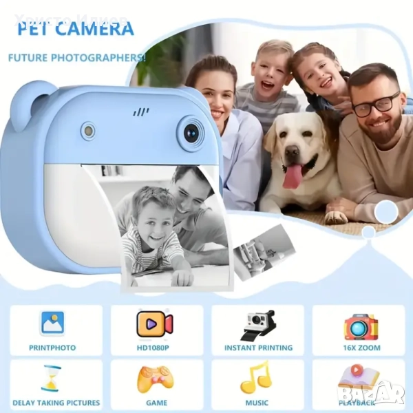 Детски фотоапарат с принтер за незабавен печат Фотопринтер Син Розов