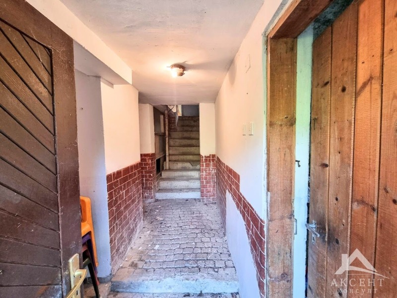 🚪 първи етаж - дълъг коридор и стълбище към горния етаж. На партерния етаж са разположени: голяма баня с тоалетна, стая с камина, 🎿складово помещение/мазе;