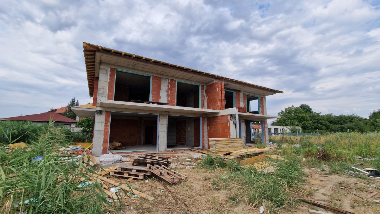 Педставяме ви стилна и модерна къща тип близнак на два етажа, разположена в живописен район с панорамна гледка към Родопите. Имотът съчетава уюта на семейния дом с удобството на съвременното строителство, предлагайки функционално разпределение и светли, просторни помещения.
