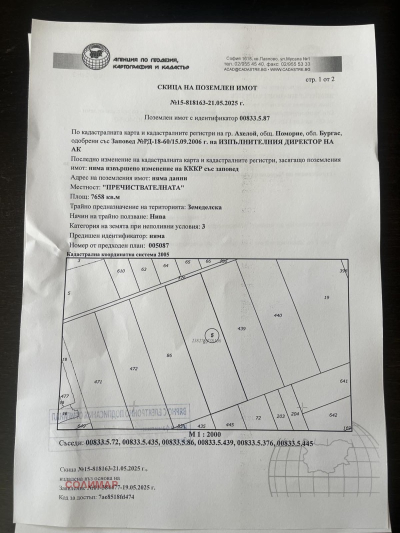 Продава ЗЕМЕДЕЛСКА ЗЕМЯ, гр. Ахелой, област Бургас → Обява 51296930