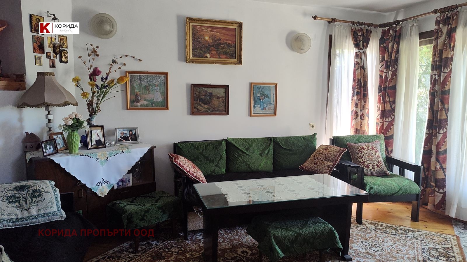 Самостоятелна къща строена 1992г. със следното разпределение;дневна с кухненски бокс от който се излиза на веранда, баня с тоалетна, на второ ниво две стаи, на следващо ниво таван, който може да се обособи в стая, има сутеренно ниво, където има още една стая и до нея склад с обособено мокро помещение.Къщата е в много добро състояние, има водопровод и канализация, двора е равен и облагороден, до къщата има и стопанска постройка, използва се за склад.Намира се на 5 минути пеша до центъра на селото.