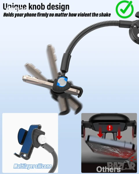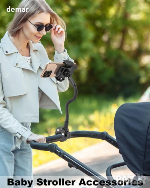 LYFPOOM Стойка за телефон 4-7 инча за кормило/бебешка количка, тип "гъша шия"