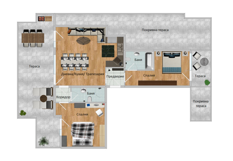 Жилището е със следното функционално разпределние: