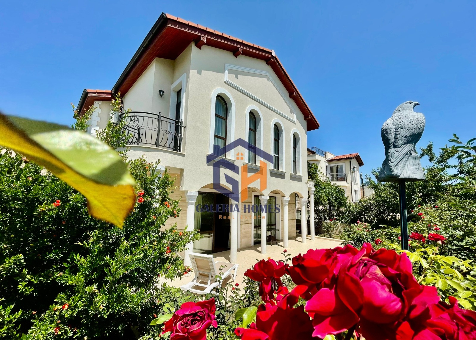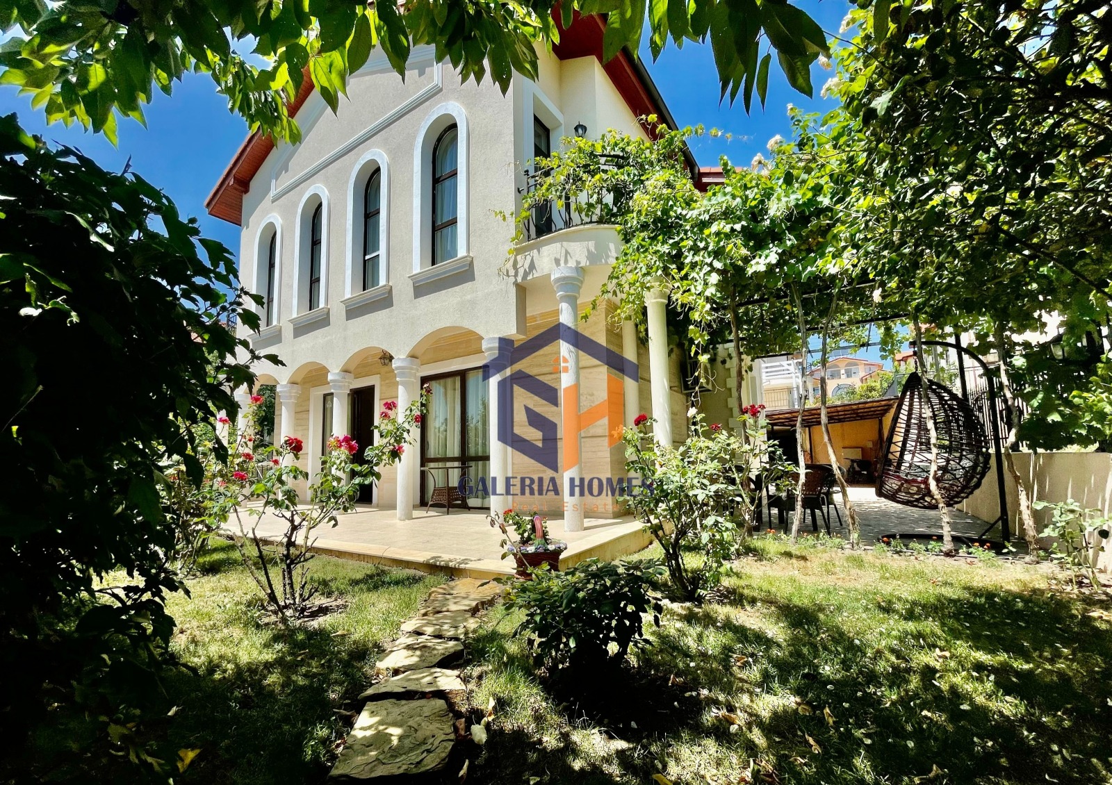 Галерия Имоти Ви предлага за продажба самостоятелна двуетажна къща в Свети Влас, Бургас. Имотът е с модерна визия и добре поддържана градина. От всяка стая се открива Гледка Към Морето. Къщата има две паркоместа.