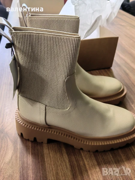 Предлагам нови дамски боти до глезена на платформа със спортна подметка. Без закопчаване, с ластик. Номер 36. Цвят екрю.