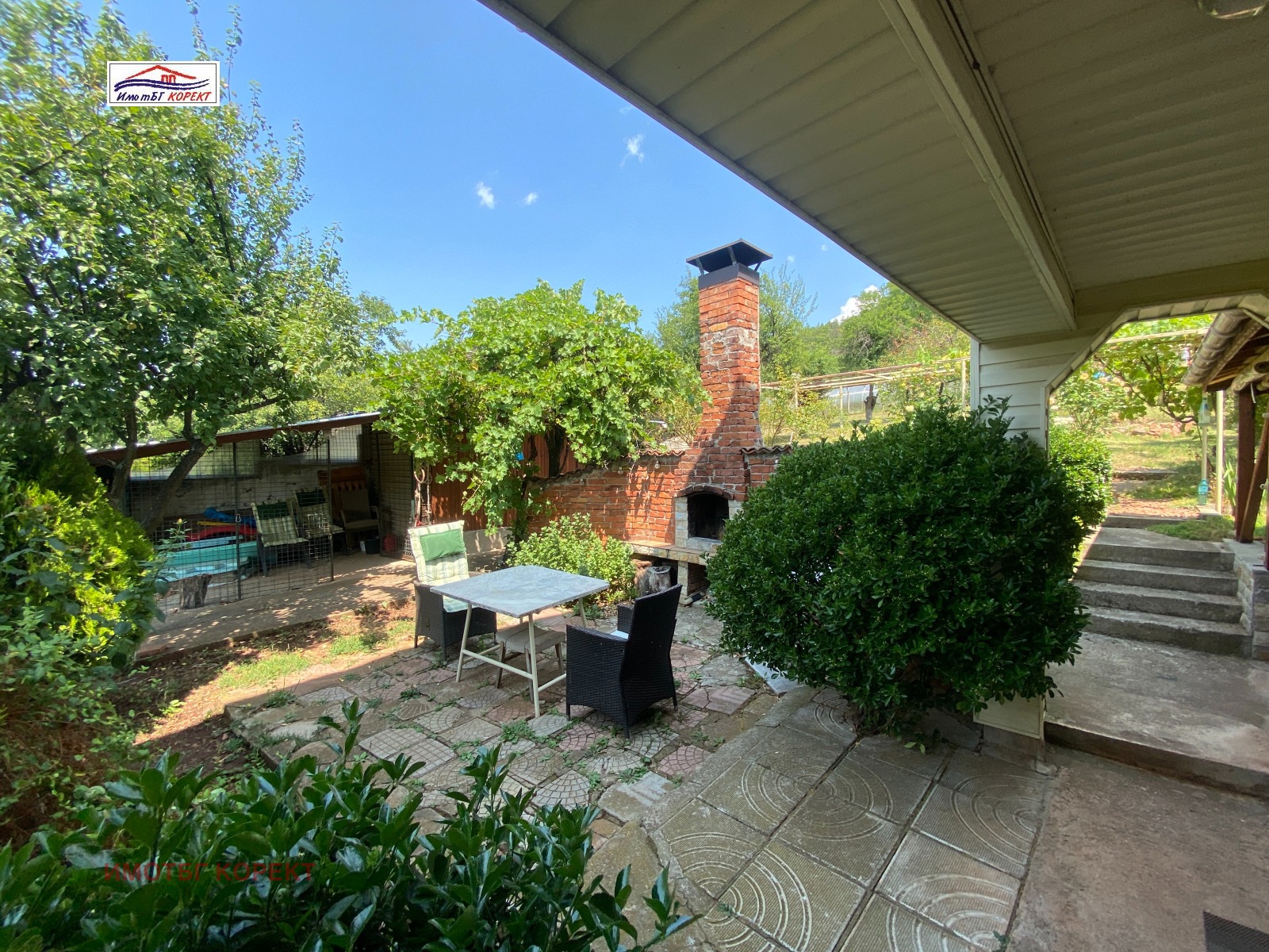 Двор: Имотът разполага с красиво озеленен и поддържан двор с плодни дръвчета и лоза с площ от 1100 кв.м. В двора са изградени камина, лятна трапезария, както и помещение за инструменти.