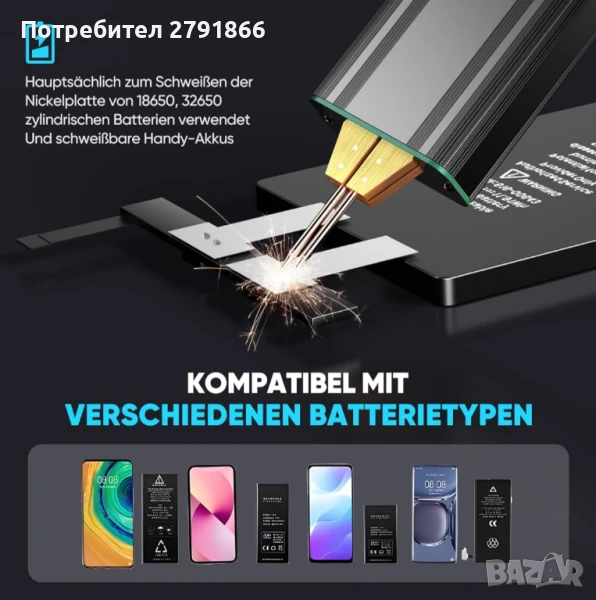 - ✅【Разнообразни възможности за заваряване】Апаратът за точково заваряване с батерии е подходящ за различни цилиндрични литиеви батерии (18650, 26650, 32650), батерии за мобилни телефони, никел-метал-хидридни и никел-кадмиеви батерии. Поддържа заваряване на никелирани листове (0,1 - 0,2 мм).