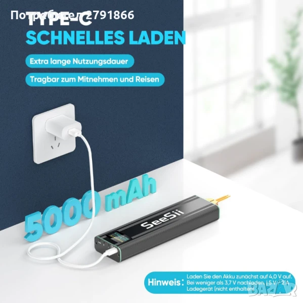 - ✅【5.0Ah батерия с Type-C зареждане】: 5000mAh батерия с максимална мощност 800A. Осигурява над 800 заварки с пълно зареждане. Поддържа Type-C зареждане. Дълготрайната производителност намалява честото зареждане и осигурява непрекъсната работа по големи проекти.