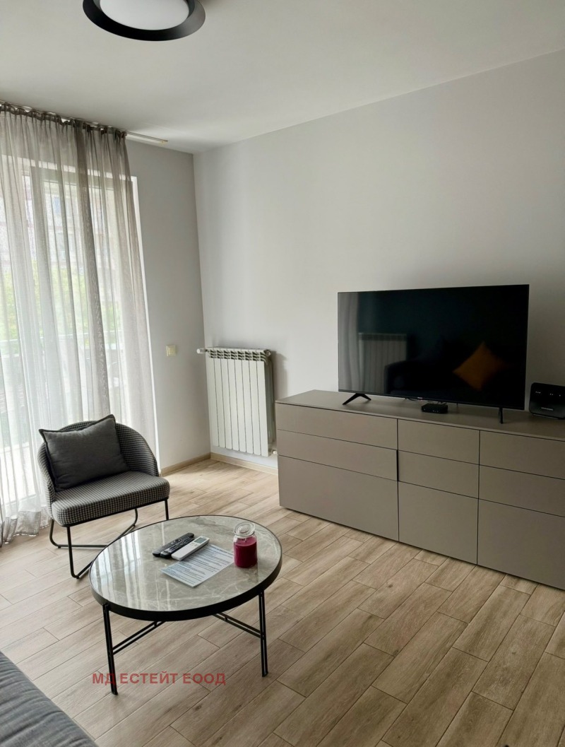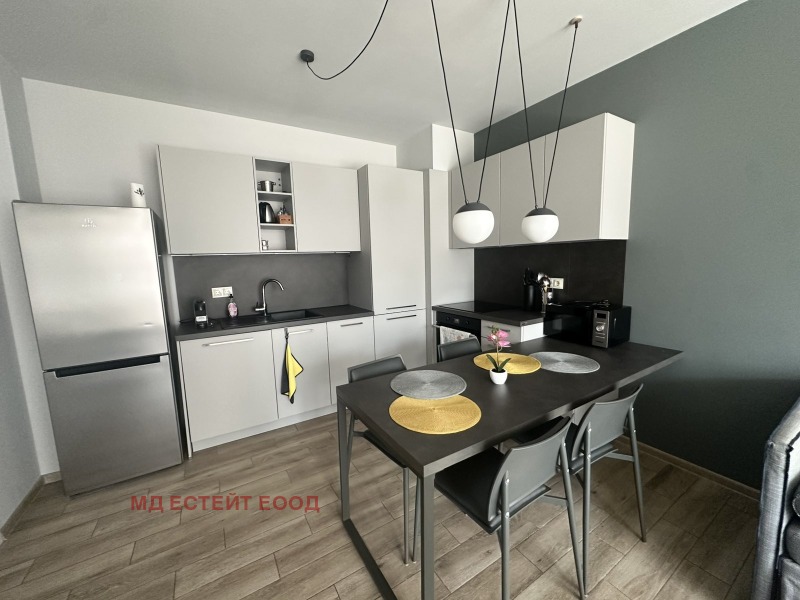 МД ЕСТЕЙТ предлага под наем напълно обзаведен тристаен апартамент, оборудван с всичко необходимо за едно домакинство. Жилището е функционално разпределено и включва просторна дневна с кухненски бокс, основна спалня, втора спалня (или детска стая), баня с тоалетна, входно антре и тераса.
