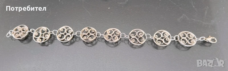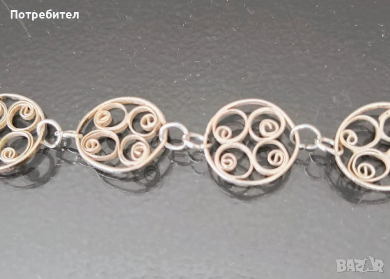 Сребърна гривна - техника филигран, дължина 19 см., без забележки.