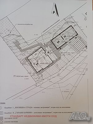 Площта на поземления имот е 934 кв.м., с неправилна форма и естествен наклон от юг на север с лице на югоизток, като в имота има вода, ток и септична яма. Предвидена за изграждане е жилищна сграда с гараж и барбекю- етапно строителство. На първи етап са предвидени за изграждане гараж за два автомобила и барбекю, чиито основи са положени, застроената площ на този етап е 59,06 кв.м. На втори етап е предвидена за изграждане жилищна сграда със застроена площ от 125,40 кв.м., и РЗП 204,76 кв.м., разпределени по следния начин: първият етаж е на ниво терен. Тук на кота +-0,00 са разположени покрита входна площадка/ веранда, стълба към втори етаж и коридор, склад, дневна с трапезария и кухня, две спални, баня и тоалетна, на втория етаж са две спални, баня и тоалетна, тераса.