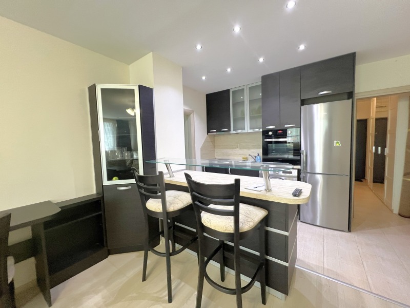 Апартаментът е оборудван с всички необходими електроуреди хладилник с фризер , съдомиялна, вградени фурна, котлони, абсорбатор, пералня, климатик и др.