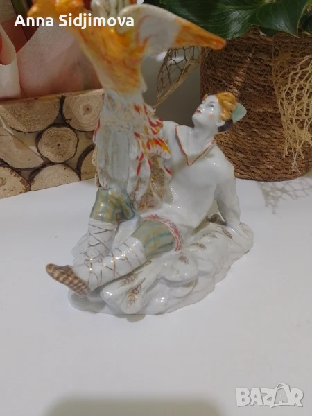 Скулптура „Иван Царевич с Жар-птица“. СССР, Ленинградска порцеланова фабрика (ЛПФ), автор на формата Г.П. Якимова, автор на картината Е.Н. Лупанова. 1950-те - 1960-те. Порцелан, живопис, позлата. Височина 19 см.