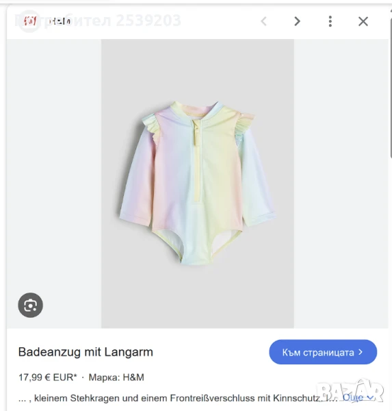 Детски бански H&M 18-24 месеца → Обява 51302438