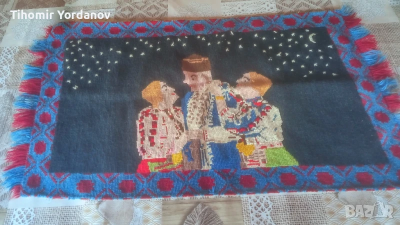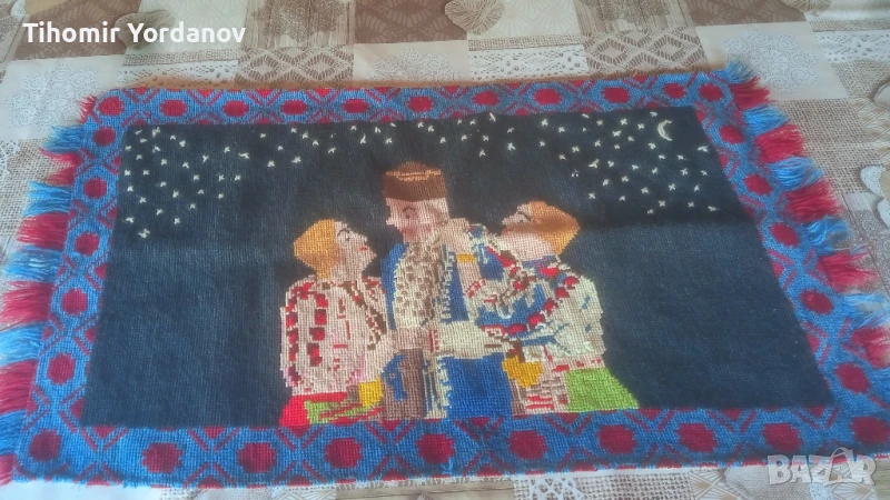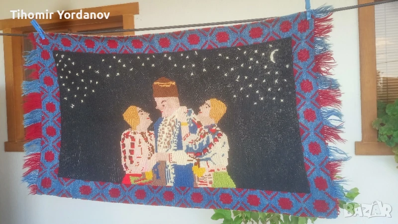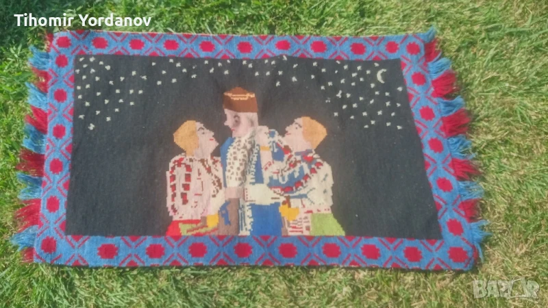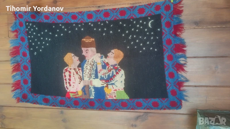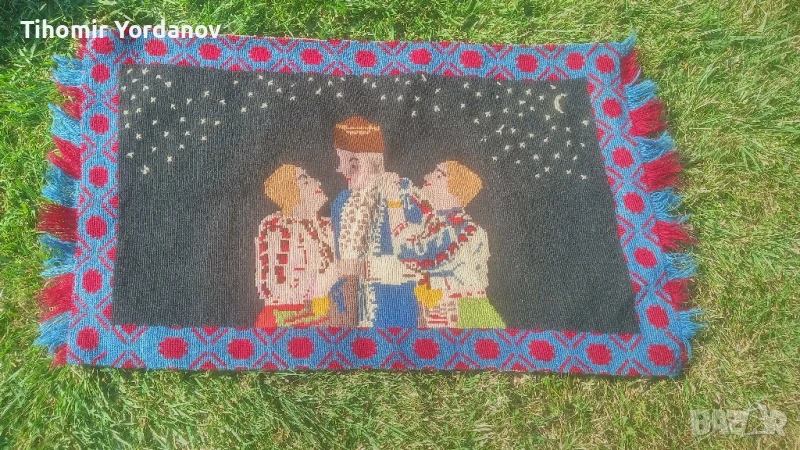 Стар вълнен ковьор за стена с народни мотиви,в реално автентично състояние.За украса и декорация.Размери от снимките.