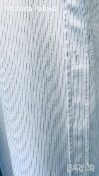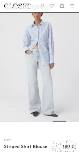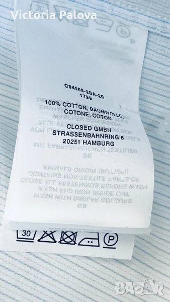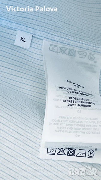 Нежно тънко райе, високо качество памук, паднало рамо, объл долен край, натурални седефени копчета. Рамо - 56см, ГО - 64см( на гърба плоха), ръкав - 58см, дължина отпред - 72см, отзад - 77см. Марката е известна с уникалния си дизайн, съчетаващ класически елементи със съвремени тенденции. CLOSED прави акцент върху високо качество на материи и майсторство на производството, което се запазва в Италия.