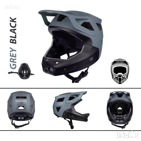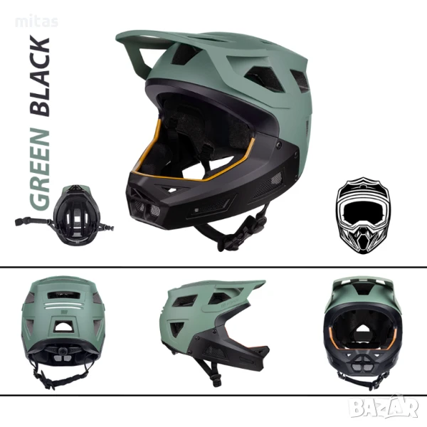 - Тип: Каска за спускане (Downhill) с несваляема долна част