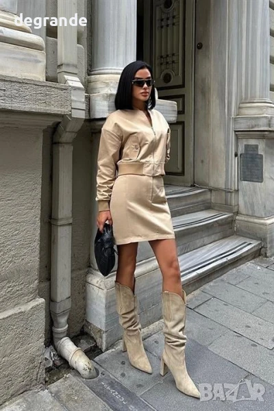 Уникален модел дамски бежов комплект.Прекрасно решение за елегантнста ви визия.
