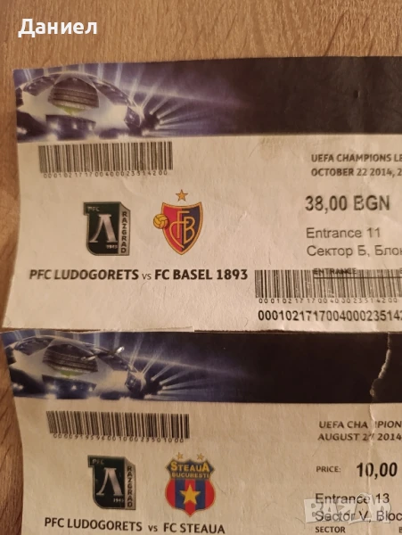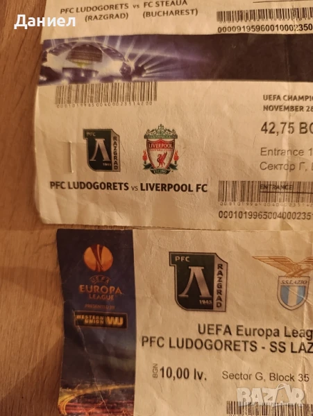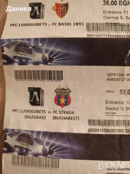 Футболни билети за колекция от мачовете на Лудогорец в Европа.