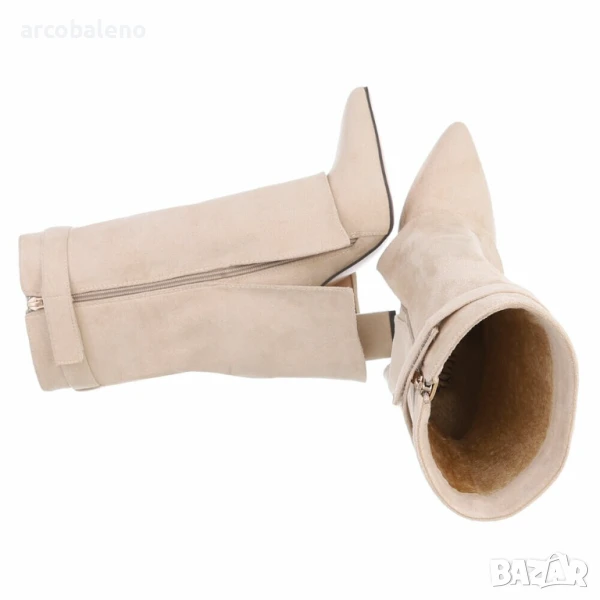 Открийте вечен шик с тези стилни боти до глезена, които не само привличат погледа, но и предлагат максимален комфорт. Висококачественият материал осигурява приятно усещане под краката и впечатлява с изисканото си усещане. Специалната характеристика на този дизайн се крие в елегантния връх и модерния, над прасеца, дръжка, която придава на обувката отличителен силует. Идеални за по-хладните сезони, тези боти до глезена могат да се носят както за ежедневно носене, така и за специални поводи. Независимо дали са в офиса, на вечеря или докато се разхождате из града – те винаги добавят стилен щрих. Тези обувки са насочени към жени, които следят модата и обичат да подчертават личния си стил с елегантни и удобни обувки. Поглезете се с този модерен спътник и се насладете на комбинацията от функционалност и модерен дизайн.