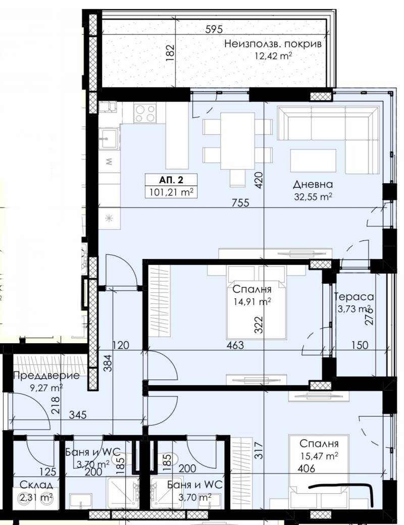 Просторна дневна с кухненски бокс