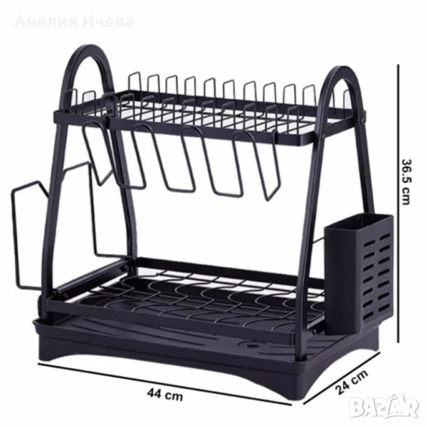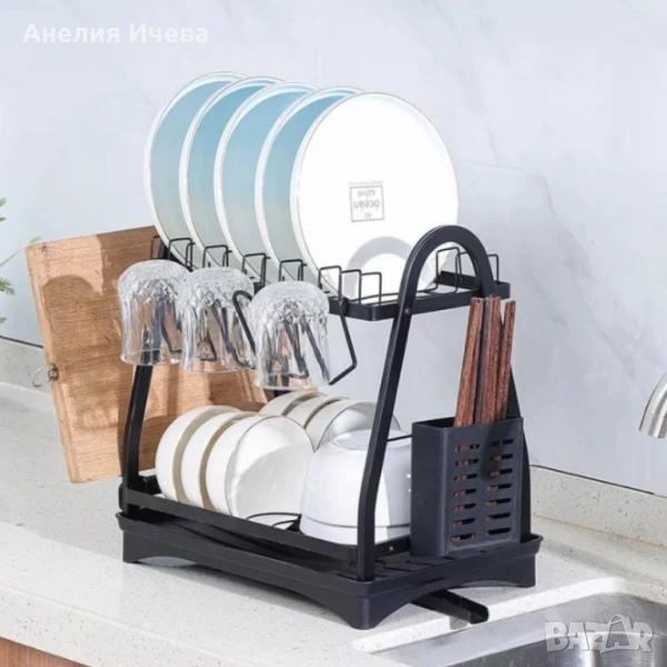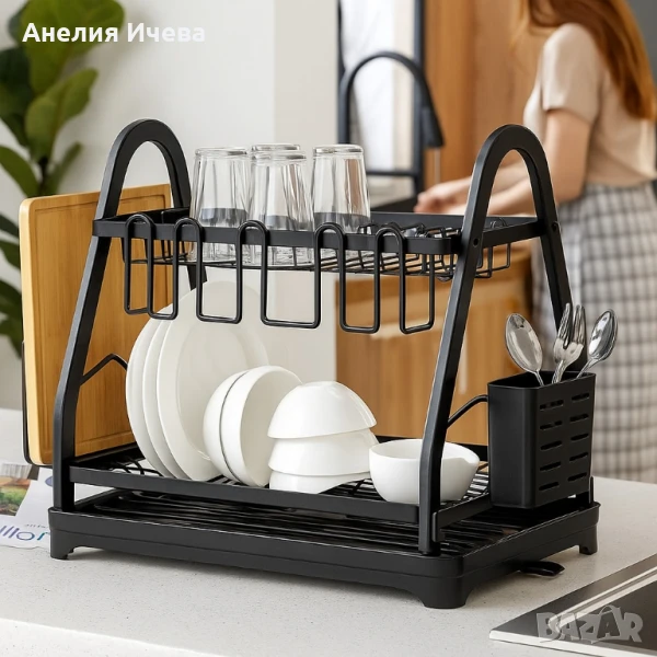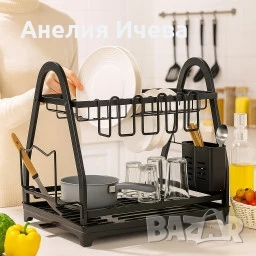 Пластмасов елегантен сушилник за съдове на две нива в черен матов цвят ?️?