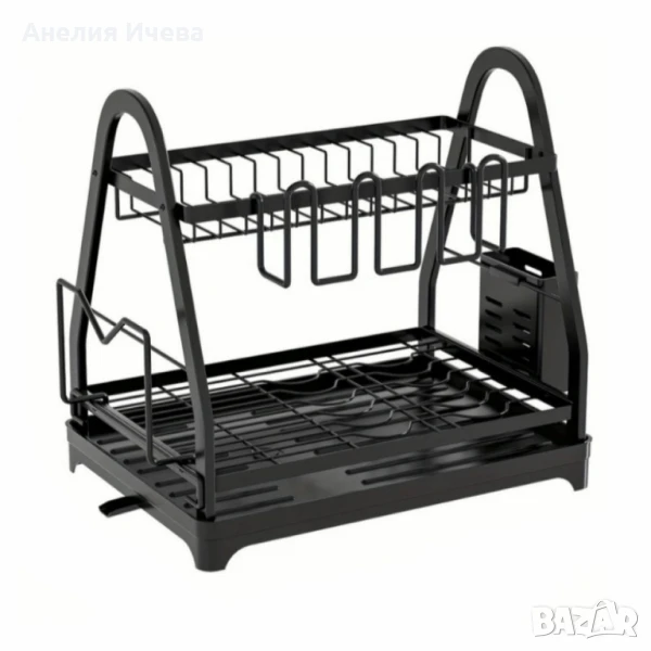Този стилно дизайниран сушилник е подходящ за употреба в модерната кухня. С две нива предоставя достатъчно пространство за съдове и прибори. Матовата черна отделка му добавя изискан вид, който се допълва с ефективността му в съхраняването и подсушаването на съдове. ??