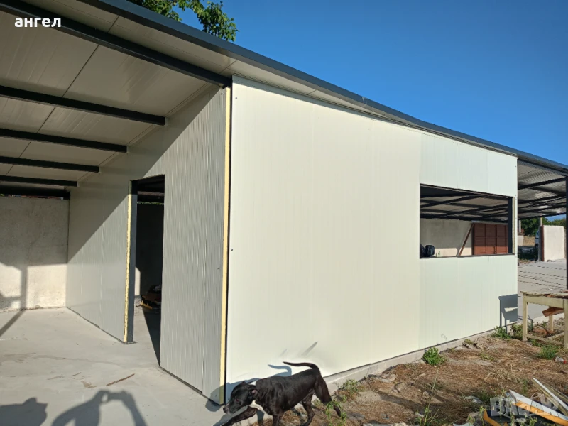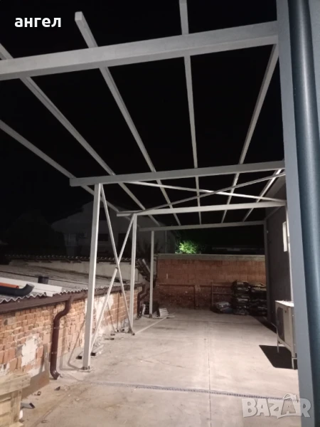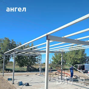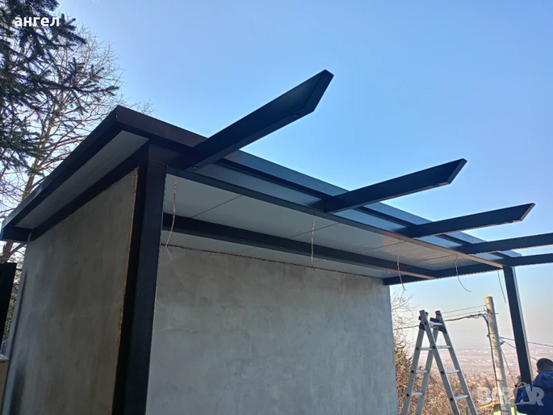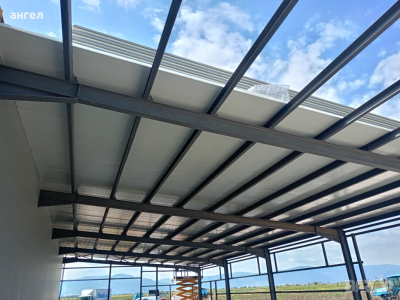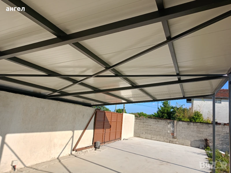 Метални конструкции гаражш навеси козирки халета магазини и др.Термопанели и LT ламарини.