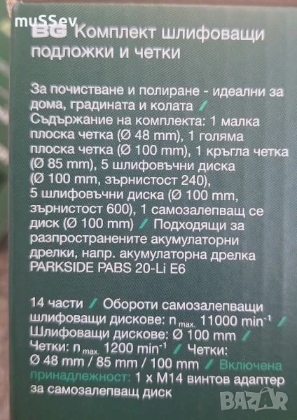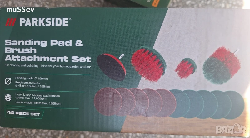 комплект от шлифоващи подложки и четки на Парксайд от 14бр. комплект.
