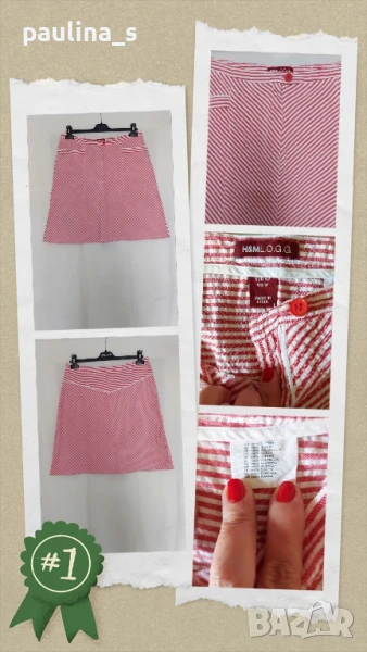 3️⃣. Колаж / XL / 2XL - "H&M" LOGG. Цената е крайна 19,99лв / 10 евро. Памучна пола с джобове и окантена платка отзад. Веревна кройка, стои превъзходно и дава радиална еластичност, до 44EU! Материята е памучен кенар с измачкан ефект, на вафлички!