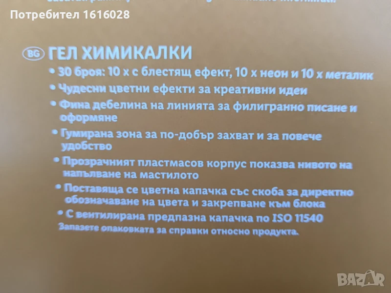 Комплект 30 бр.гел химикали CRELANDO - блясък,металик,неон., снимка 1 - Ученически пособия, канцеларски материали - 51307604 Комплект 30 бр.гел химикали CRELANDO - блясък,металик,неон., снимка 2 - Ученически пособия, канцеларски материали - 51307604 Комплект 30 бр.гел химикали CRELANDO - блясък,металик,неон., снимка 3 - Ученически пособия, канцеларски материали - 51307604 Комплект 30 бр.гел химикали CRELANDO - блясък,металик,неон., снимка 4 - Ученически пособия, канцеларски материали - 51307604 Комплект 30 бр.гел химикали CRELANDO - блясък,металик,неон., снимка 5 - Ученически пособия, канцеларски материали - 51307604 1/5