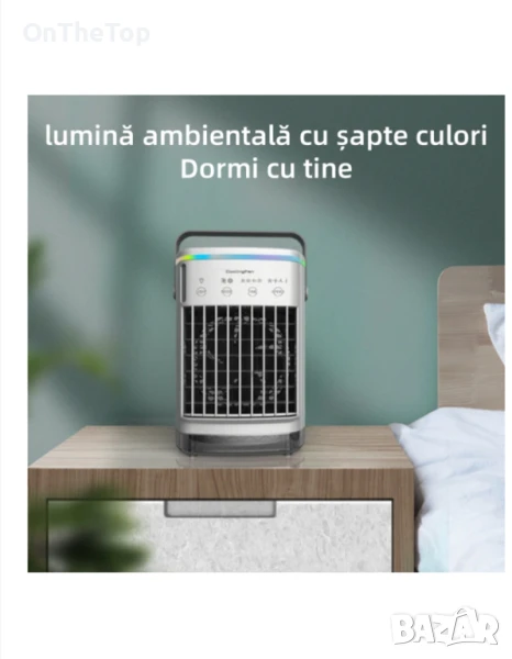 Охладител за въздух, резервоар за вода 700 ml, 7-цветна околна светлина, 4-степенна настройка, функция таймер, USB, сензорно управление, бял.