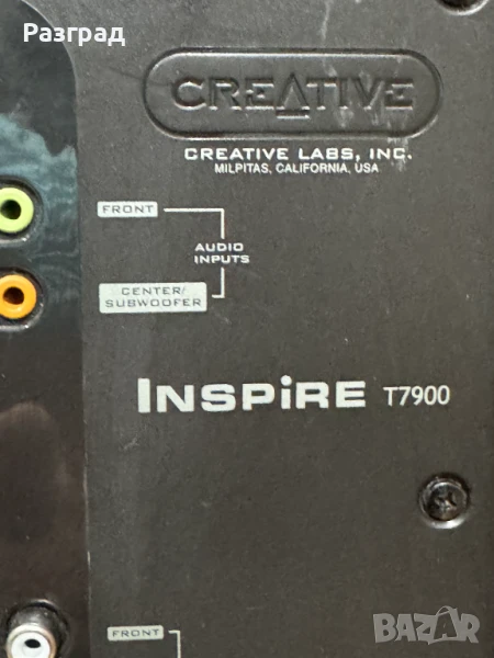 Високоговорителите Creative Inspire T7900 осигуряват несравнимо потапяне в 7.1 съраунд звук в игри, филми и музика. Когато се използват със звукови карти Sound Blaster 7.1, те поддържат най-новите и най-модерни стандарти за съраунд звук, налични днес. Предните сателити включват високочестотни и средночестотни драйвери за детайлна средна до висока тоналност, а подсиленият дървен субуфер осигурява динамичен бас. Предният централен високоговорител има допълнително усилване за подобрен диалог и ефекти, докато хоризонталният му дизайн позволява да бъде позициониран за оптимални резултати като система за домашно кино. Гъвкавата свързаност чрез субуфера и кабелното дистанционно управление позволява използване с множество източници на звук, а технологията CMSS up-mix на Creative поддържа 7.1 изход от 5.1 или 6.1 звукови карти.