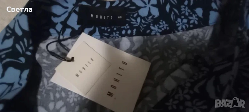 Лятна пола в синьо. Нова, с етикет. Марка Mohito. Пропуснах срока за връщане и няма да я нося. Материята е много приятна, лека и падаща, хлъзгаща се по тялото. Леко разкроена, с висока цепка и цип на талията. Има и пришито коланче от същия материал. Не се притеснявайте да питате, ако нещо не съм описала!