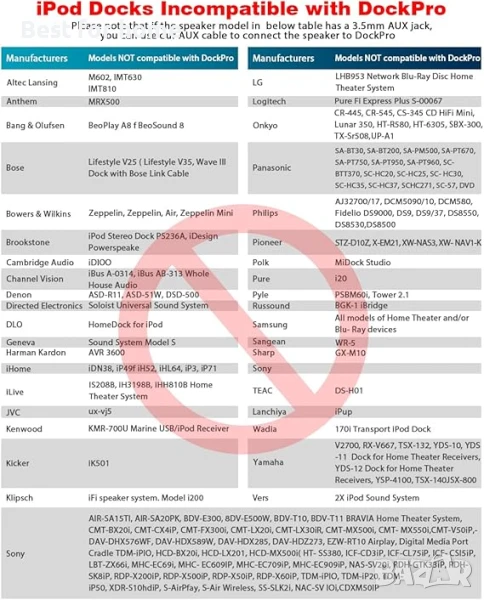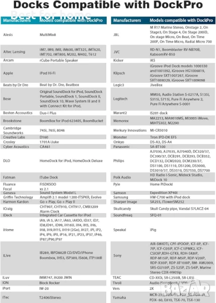 【Лесна работа, съвместим с повече високоговорители】Включете и играйте, няма нужда от работа. За повече съвместими високоговорители, моля, вижте адаптирания и неадаптирания списък. Моля, проверете дали DockPro поддържа вашата 30-пинова стерео система преди покупка. DockPro не поддържа използването с автомобилния iPod интерфейс.