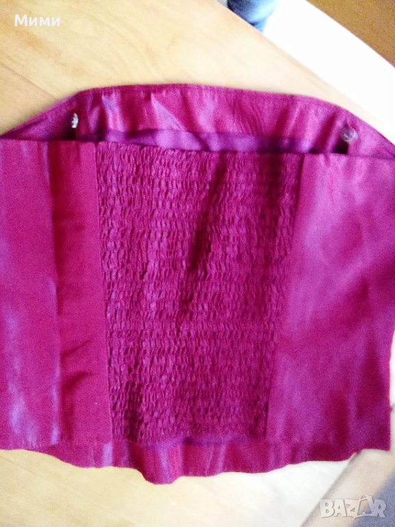 Топ- нов. Го 36 до 43 см, едностранно..Има банели, гърбът е еластичен Закопчава се с цип
