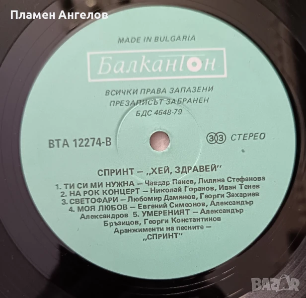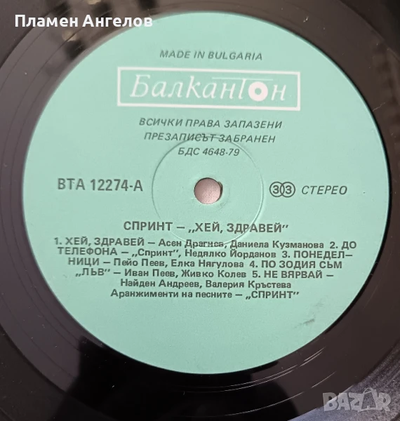 Грамофонна плоча Спринт "Хей, здравей" → Обява 51309501