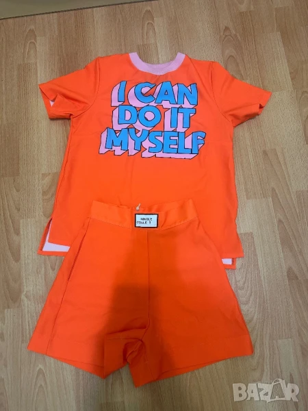 Има забележка на буквите на панталона,не се вижда при запасване на блузата.