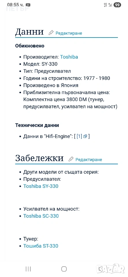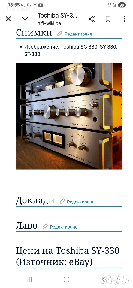 https://www.hifi-wiki.de/index.php/Toshiba_SY-330> Toshiba от четири компонента Усилвател и предусилвател касетъчен дек и тунер Обявата е валидна още няколко дни
