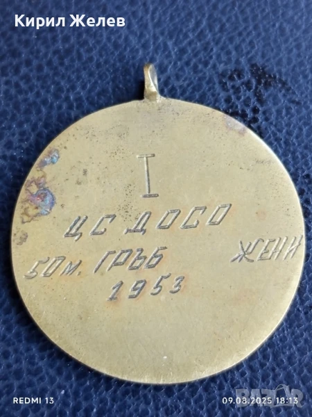 Рядък медал ПЪРВО МЯСТО ЦС ДОСО 50м. гръб жени 1953г. за КОЛЕКЦИОНЕРИ 28159