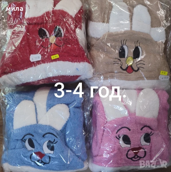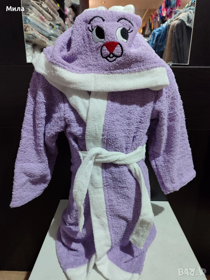 халати за баня, памучни, с качулка с ушички.