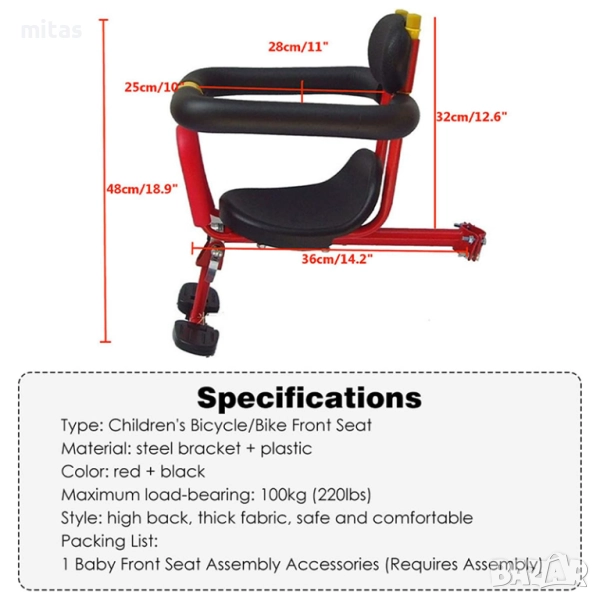 * Тип на артикула: Предно детско столче за велосипед