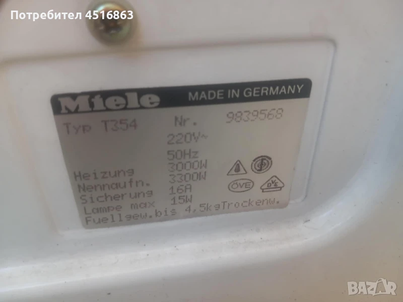 Сушилня Miele DELUXE ELECTRONIC T 354 На части → Обява 51313365