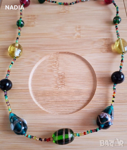 Многоцвитен красив гердан от стъклени мъниста големи и малки.