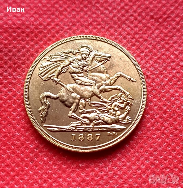 Златен суверен 1887 - реплика, снимка 1 - Нумизматика и бонистика - 51313564 Златен суверен 1887 - реплика, снимка 2 - Нумизматика и бонистика - 51313564 1/2
