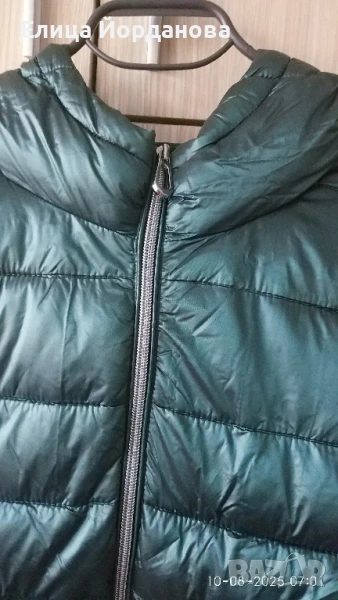 Чисто ново дамско яке на Reserved, с качулка,която има възможност да се регулира по лицето.Маслено зелено на цвят,с подплата. Размер 40 по европейската номерация,може да се носи от дами М/L размер. Цяла дължина на якето без качулката 64 см. Закопчава се с цип,отстрани има джобове,които също се закопчават с цип. Якето макар и олекотено,има плътност, предпазва и от вятър.