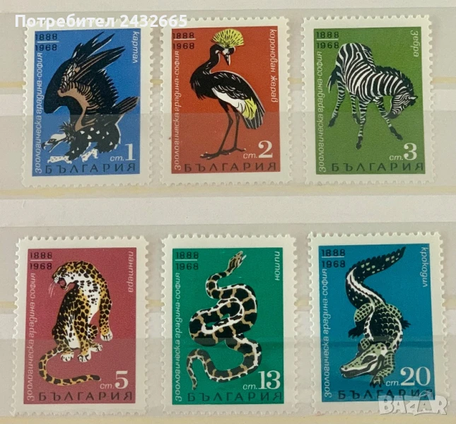 2663. България 1968 = БК 1884 /89: “ Фауна. 80 год. Зоологическа градина в София. ”, **, MNH
